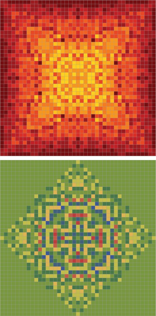 Patterns from the Mean of Two-Color Totalistic 2D Cellular Automata